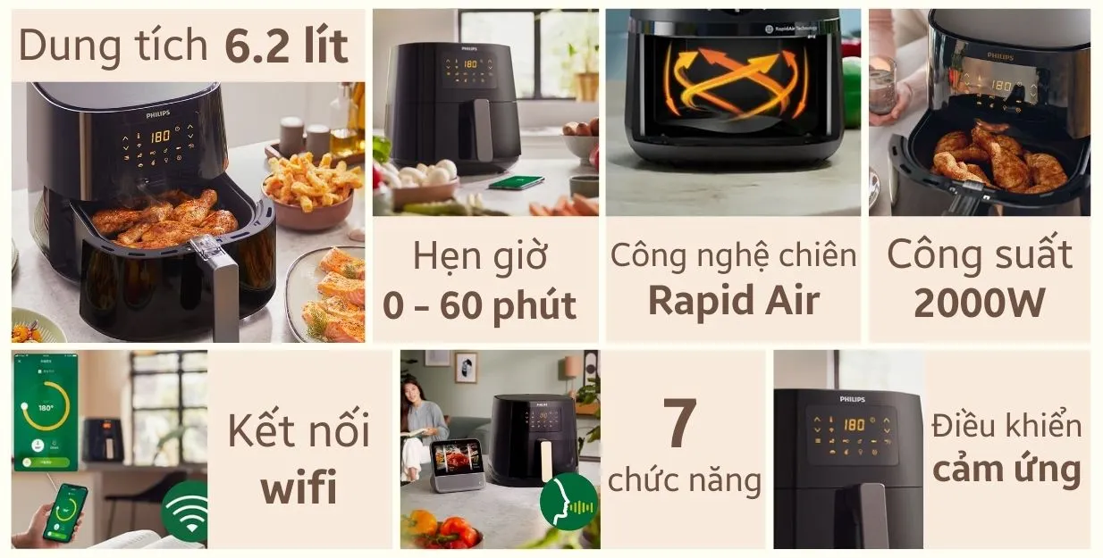 • Công nghệ nấu: Áp dụng công nghệ Rapid Air, cho thực phẩm chiên đều và giòn.